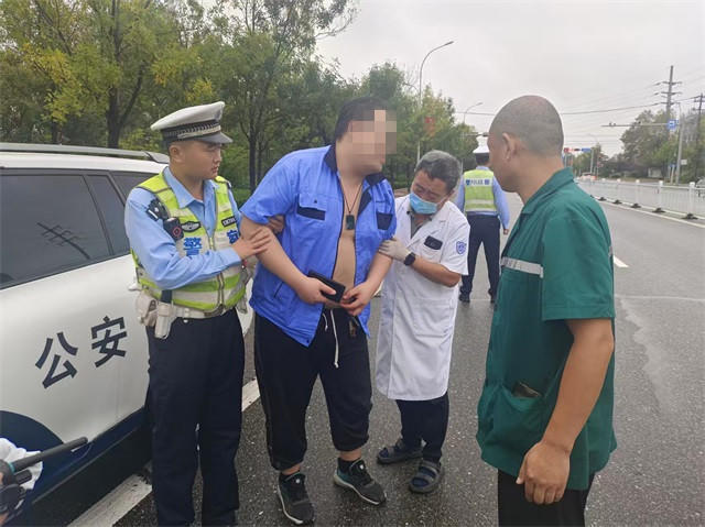 10月11日,威海市公安局交通管理支队临港区大队巡逻至辖区202省道祥和岗时,一名男性驾驶员因身体突感不适报警求助。